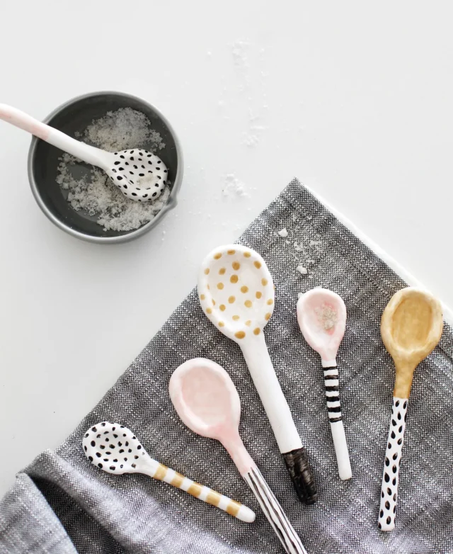 Instead of buying measuring spoons, why not make your own with air dry clay? By pressing clay into real spoons to use as molds, you can quickly shape a matching set of mini salt spoons. Once dry, you can paint the handles with measurements or leave them natural for a more rustic vibe.