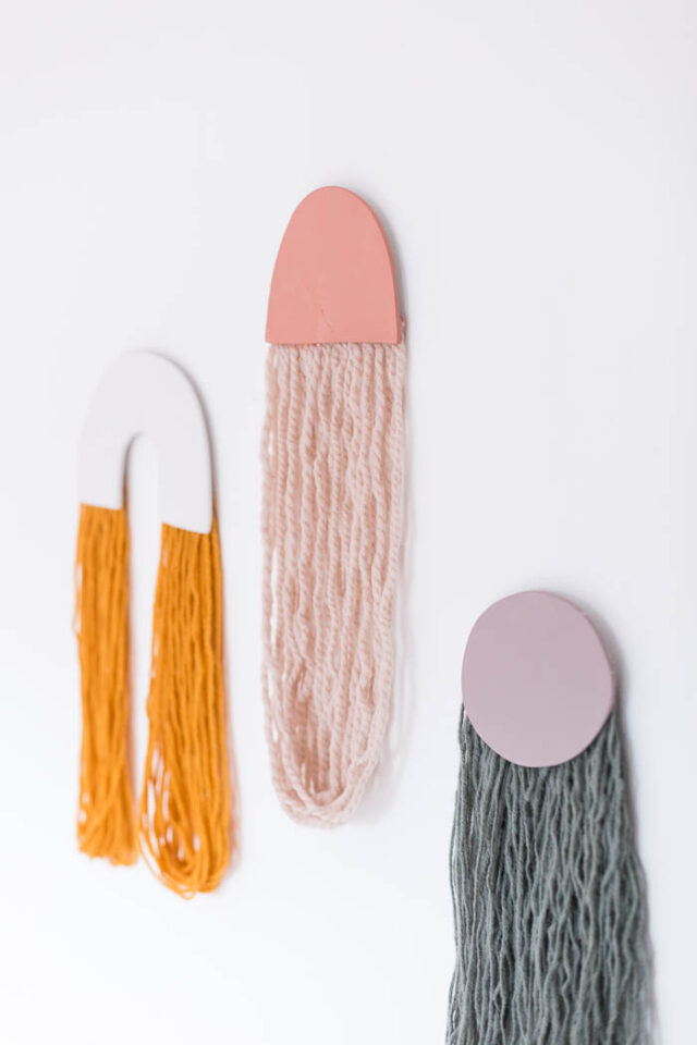 This project brings together clay and yarn to create a mixed-media wall hanging that’s full of texture. By cutting clay into small shapes — circles, arches, or triangles — and attaching them to strands of yarn, you can design a piece of art that feels handmade yet modern.