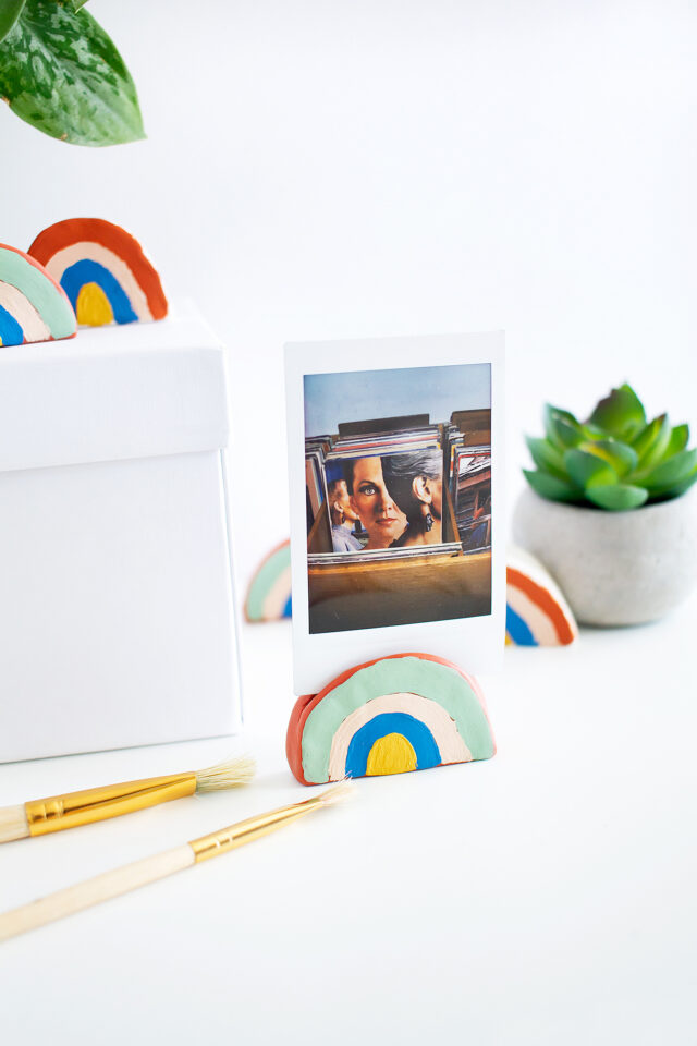 Take the rainbow trend a step further by turning it into a photo holder. With a bit of shaping, you can create a sturdy clay rainbow that holds pictures or notes upright. It’s an adorable way to display memories on your desk or shelf.