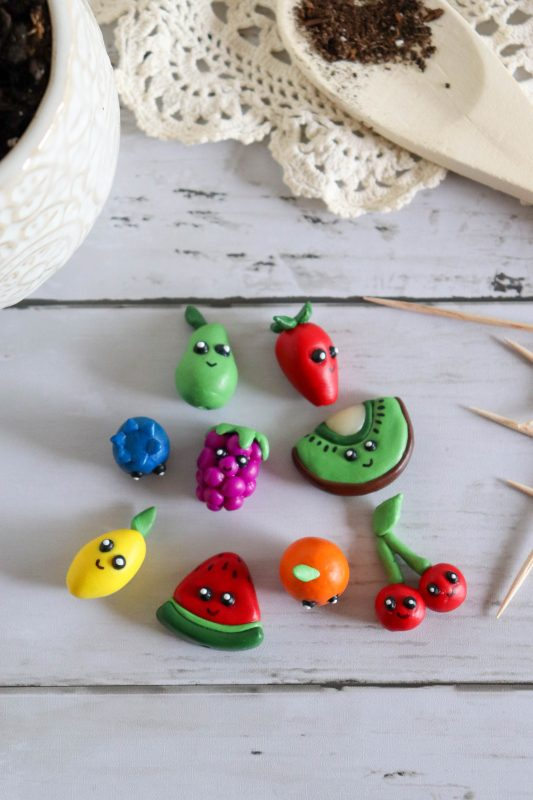 Transform your garden into an organized and whimsical space with these colorful fruit-shaped plant markers.