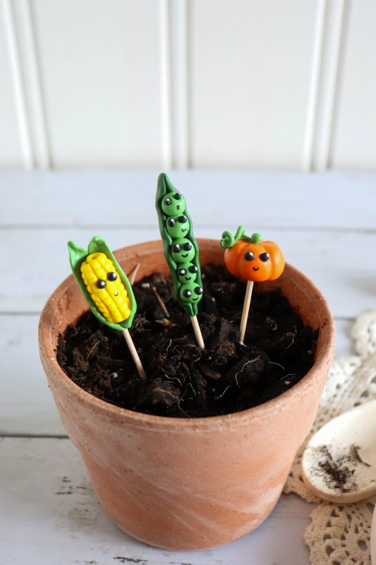 Keep your vegetable garden organized with these charming handmade markers featuring miniature versions of common garden vegetables.